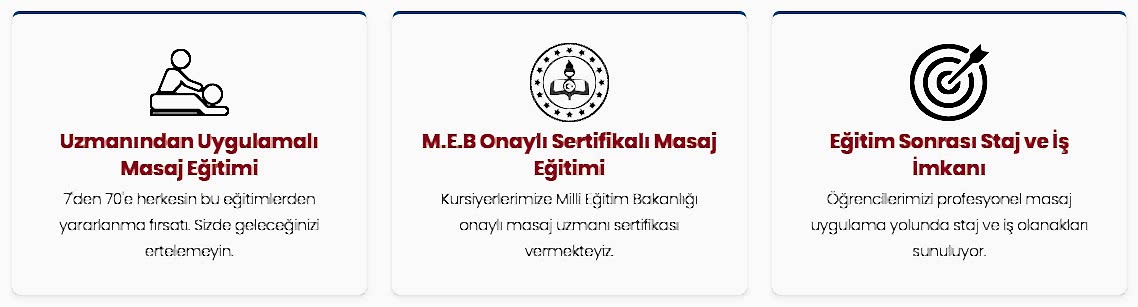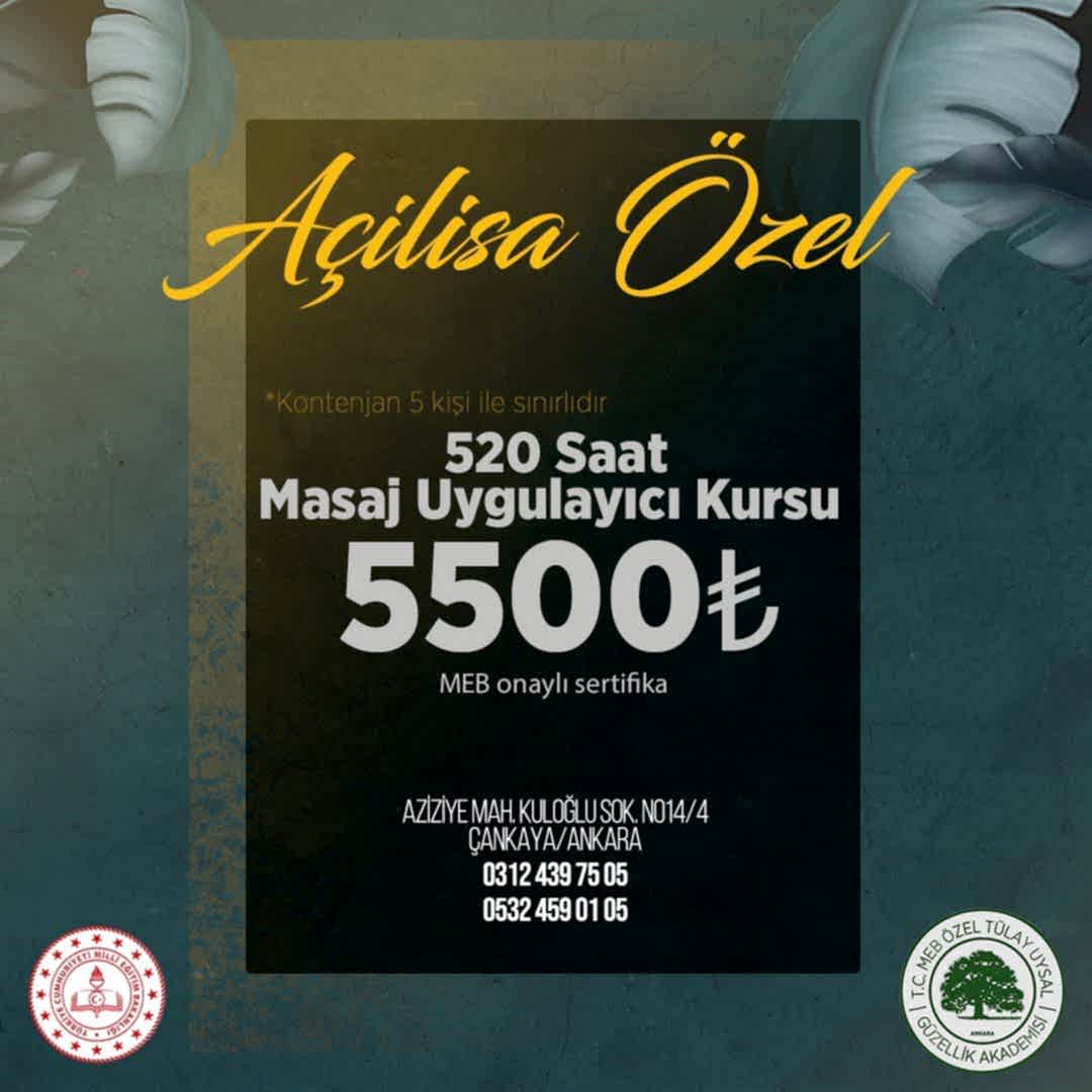 Azerbaycan'daki masaj kursları, uzman eğitmenlerle kaliteli eğitimi ön planda tutar. Eğitim anlayışı, meslek etiği ve insan sağlığına odaklanır. Teorik ve pratik program çağın gereksinimlerine uygun şekilde tasarlanmıştır. Kurs, Milli Eğitim Bakanlığı onaylıdır ve Masaj Terapistliği eğitimi alanlara M.E.B onaylı sertifika verir. Devamı...